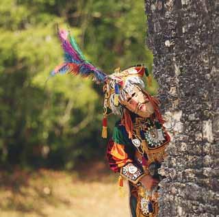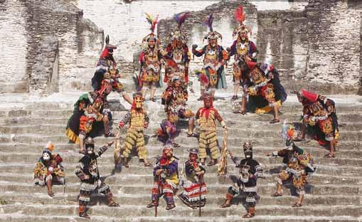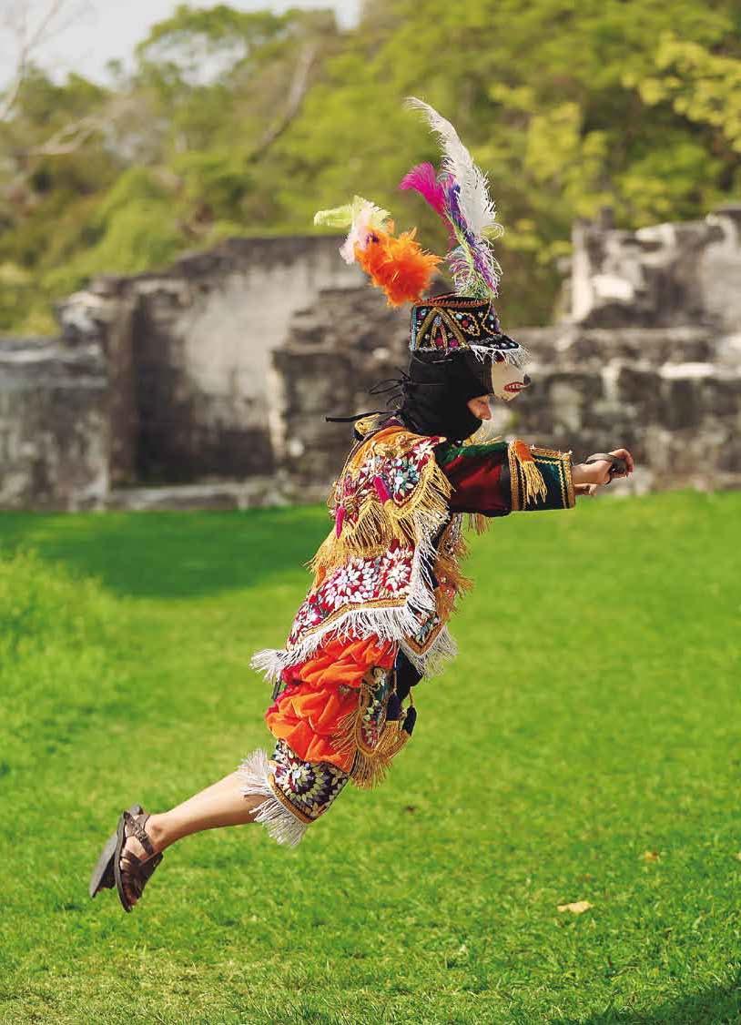 On the top of the hill during the evening, dancers circle, zigzag, and jump steps to the rhythm of the marimba, the tun, and the chirimia. In their hands, they carry chinchines, rattles, or jícaras—calabash instruments— that sound with the rhythm.