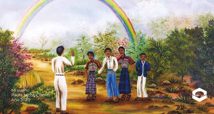 Paula Nicho Cúmez is a Mayan-Guatemalan who began her artistic career in 1985. Since then, her art has traveled to different parts of the world, reflecting nature, the Mayan cosmovision, and women.