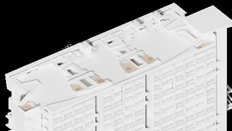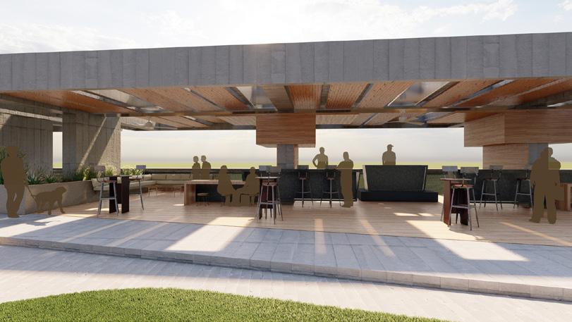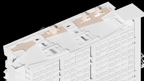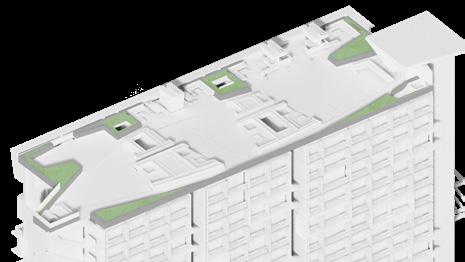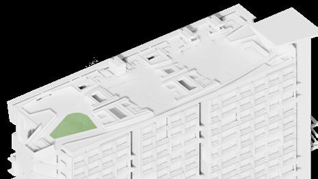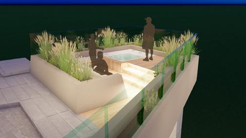 La presentación de las amenidades de cubierta se realizó por medio de una axonometría blanca renderizada que permitía mostrar cada parte de la cubierta por capas separadas. La cubierta está conformada por: zona barrestaurante, zona de jacuzzi, jardineras perimetrales que protegen el borde del edificio y la privacidad en los jacuzzis, sendero principal, 3 jardines con funciones distintas: yoga, zen y zona deportiva, la pérgola y cubierta del punto fijo. Finalmente se actualizaron los renders con los cambios de la semana anterior.