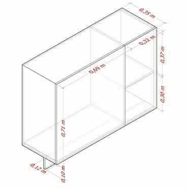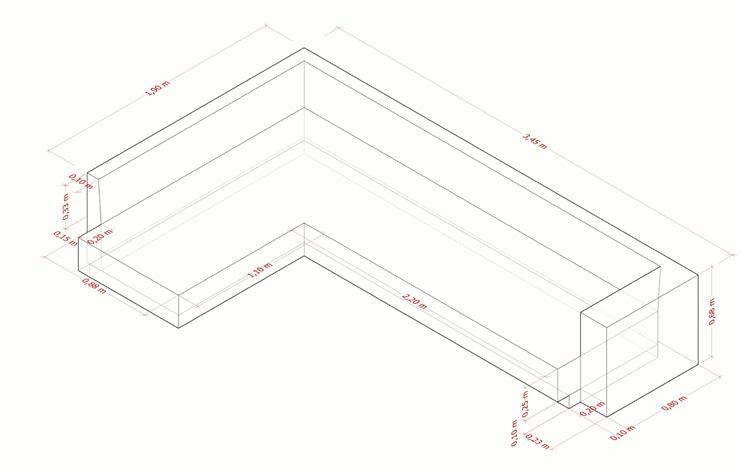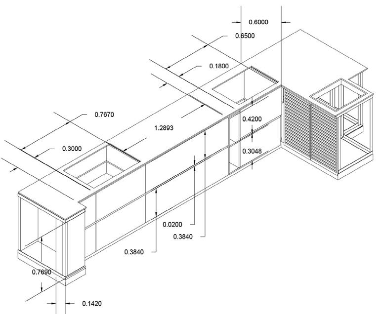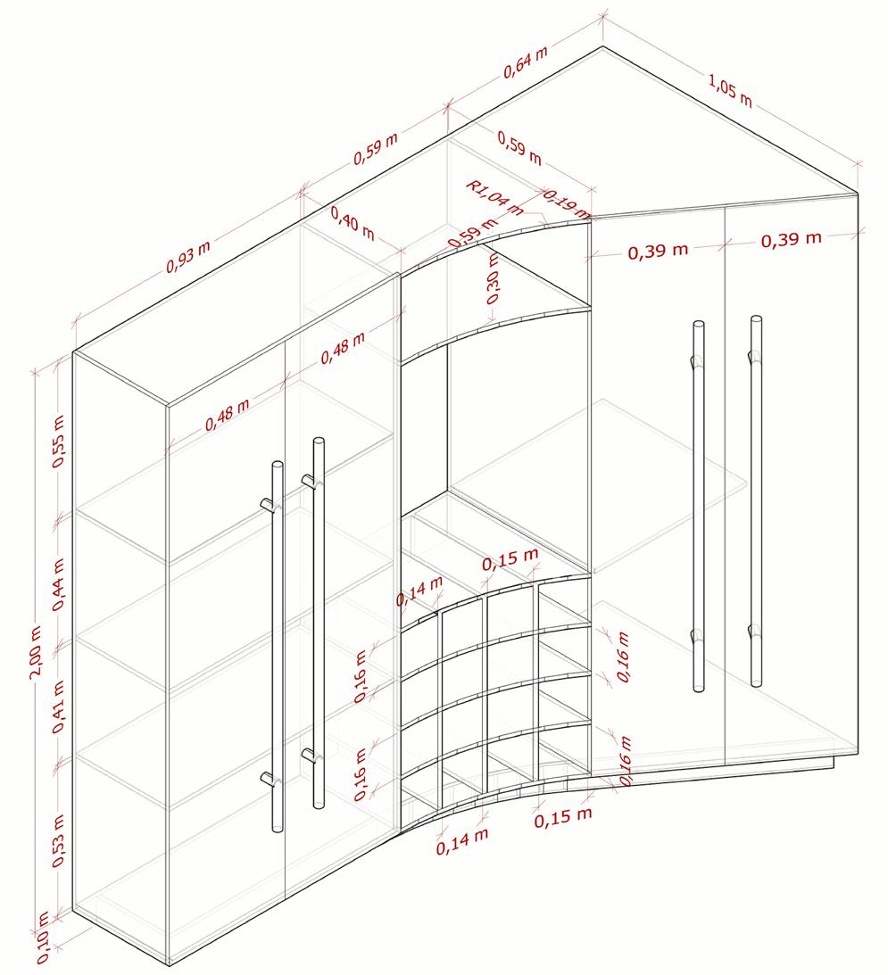 El mueble de la sala de juntas se conforma de gabinetes cerrados con una elevación del piso hasta la altura de los muros divisorios que mantienen de diferentes medidas permitiendo la conservación de elementos de diferentes tamaños, además posee un cuerpo central que consta de un botellero.