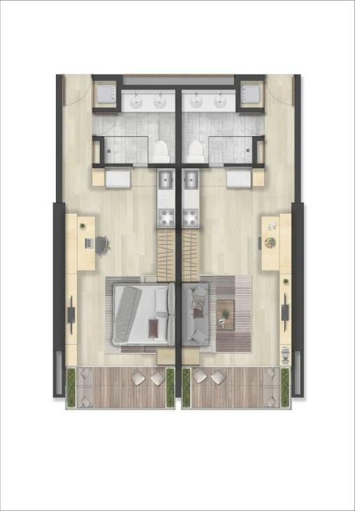 Planta apartamento 53m2 y apartamento 33m2
