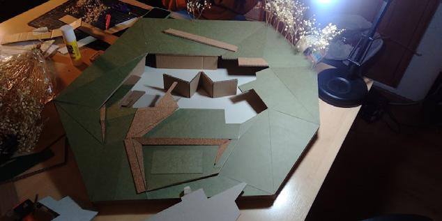 Durante una semana completa se realizó el desarrollo de una propuesta de vivienda localizada en Sindamanoy, Chía. La implantación consistía en la localización de un volumen longitudinal paralelo a las curvas de nivel y dos volúmenes que soportaban el primero a través de un juego de niveles desde so proyección perpendicular a la pendiente de la topografía. La toma de decisiones se realizó en conjunto con la elaboración de la maqueta para resolver conflictos espaciales de una manera ágil, eficaz y contundente.