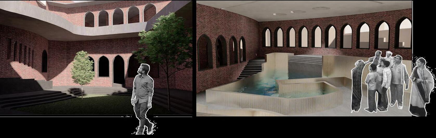 • Filler Slab has been used instead of normal R.C.C slab between floors. Structurally, R.C.C slabs does not require concrete at bottom level(tension zone), thus it has been replace with clay pots made by local artisans. This saves concrete (thus reducing cost) and provide better thermal insulation.