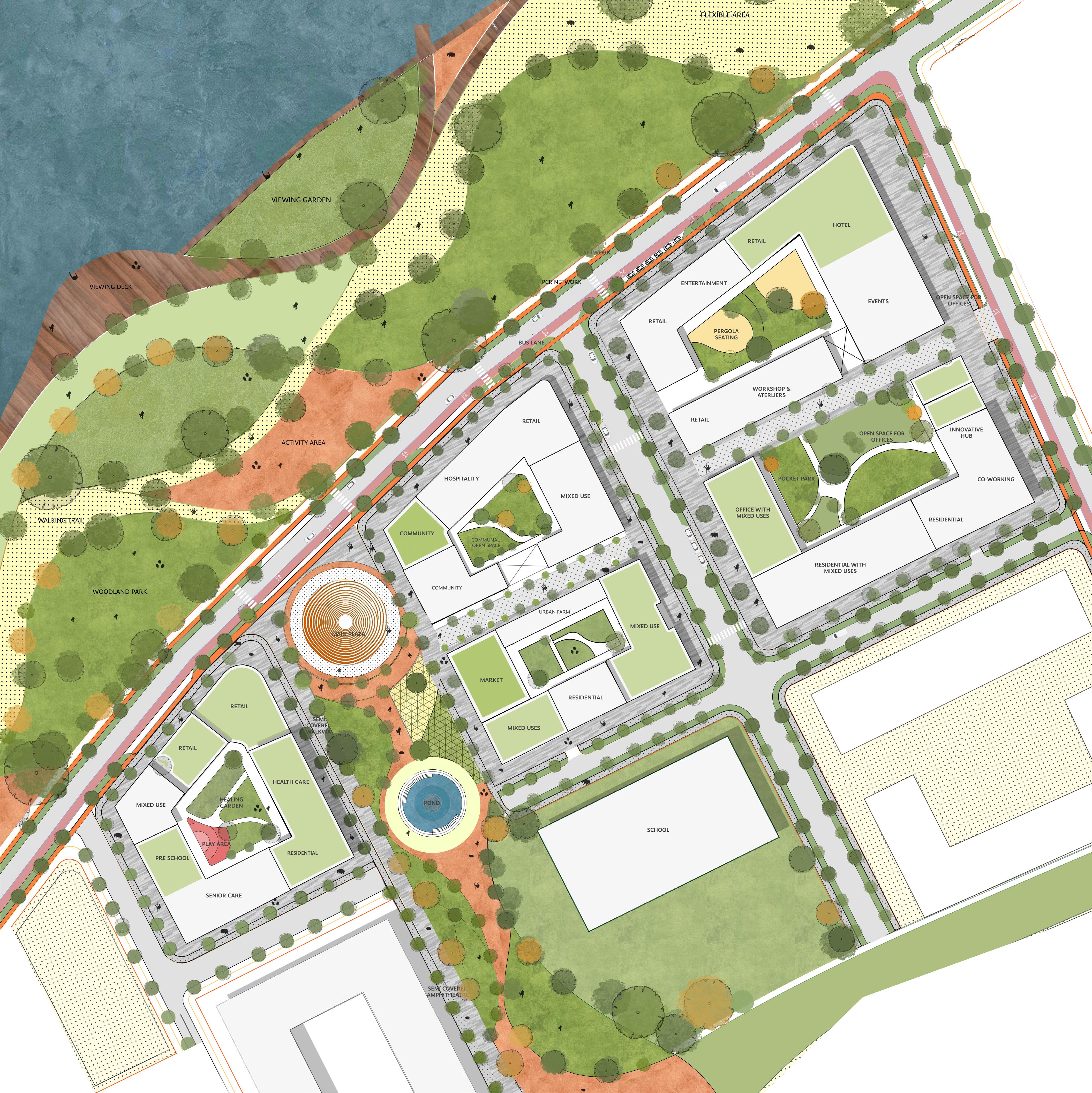 This project explores the integration of traditional kampung living with sustainable urbanism in Woodlands, Singapore. Through hand-drawn sketches and strategic urban planning, it envisions a climate-responsive, community-driven neighborhood. Key design strategies include passive cooling, shared communal spaces, pedestrian-first streets, and ecological resilience. The proposal prioritizes green infrastructure, mobility, and social interaction, ensuring a livable and inclusive urban environment. This approach highlights the role of sketching in urban design, translating concepts into visually compelling solutions for placemaking and sustainable development.