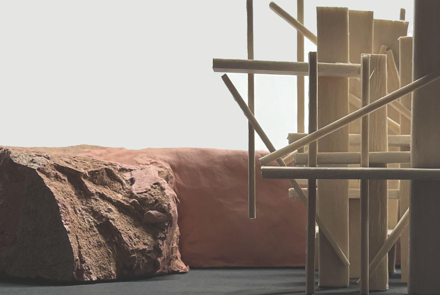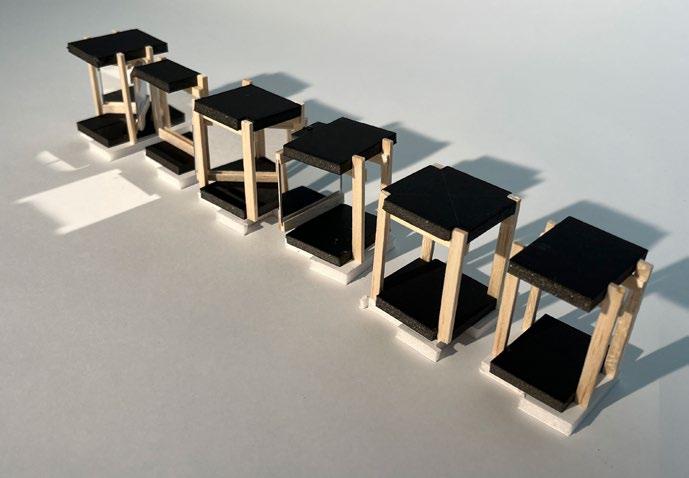 Running parallel with my thesis project, I conducted experiments using mirrors to manipulate the tectonic and light through this made artefact. I produced this model at a 1:50 scale, using it to test various sight lines and angles of mirrors. The whole artefact broke apart into modules, allowing for countless configurations to be carried out.