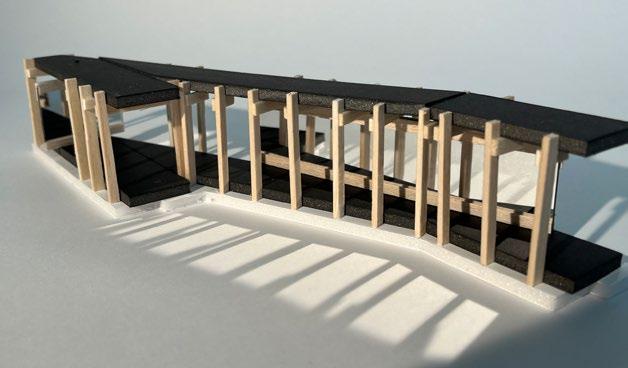 The boathouse would be home to the Preston Dragon’s boat racing team, being an embodiment of the powerful nature of boat racing. The building featured a grid shell structure representing the undulating waves, with oar-like forms striking down over the pavilion space