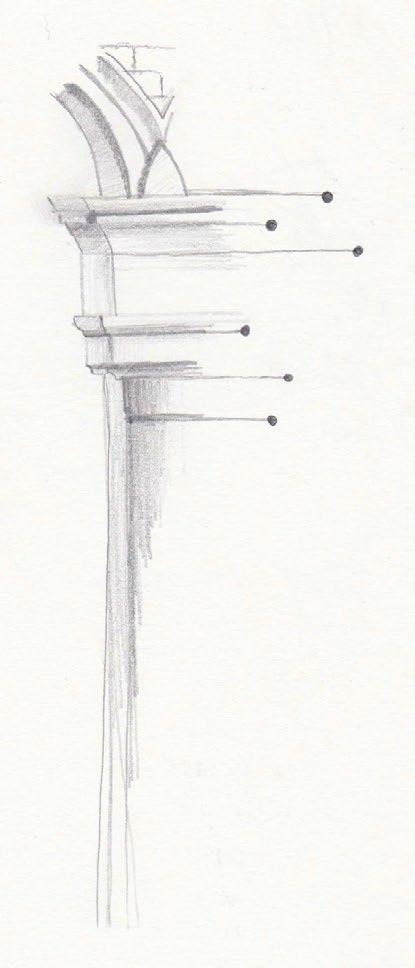 The Archway of the station is symbolic in itself as is acts as a gateway into the threshold of departure. Passing through this marks your leave. The six nodes represent the six platforms in which goods and people have left the city for the past two hundred years.
