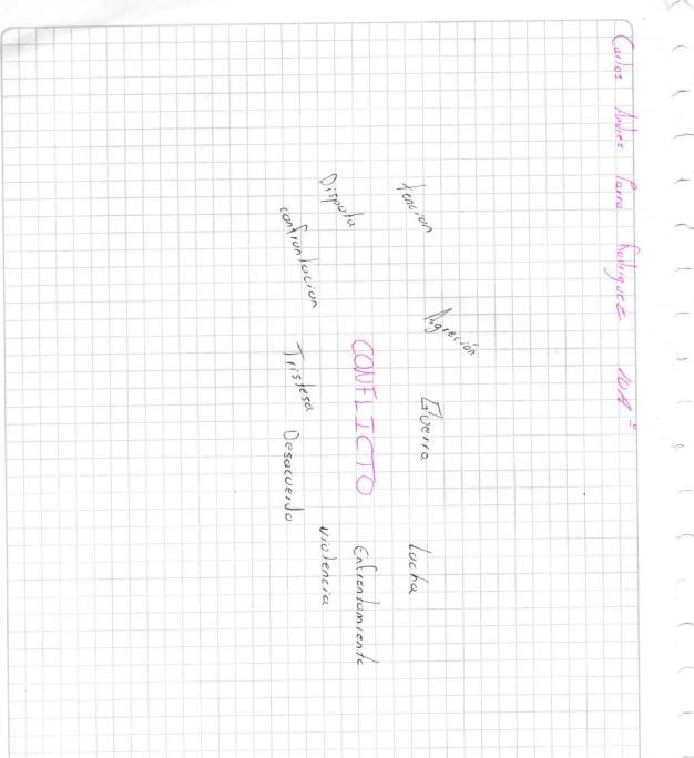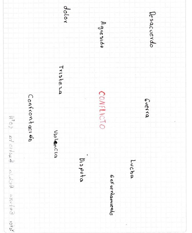 estudiantes cerca de 17 en total una hoja en blanco donde debían escribir conceptos que asociaran con el conflicto.
