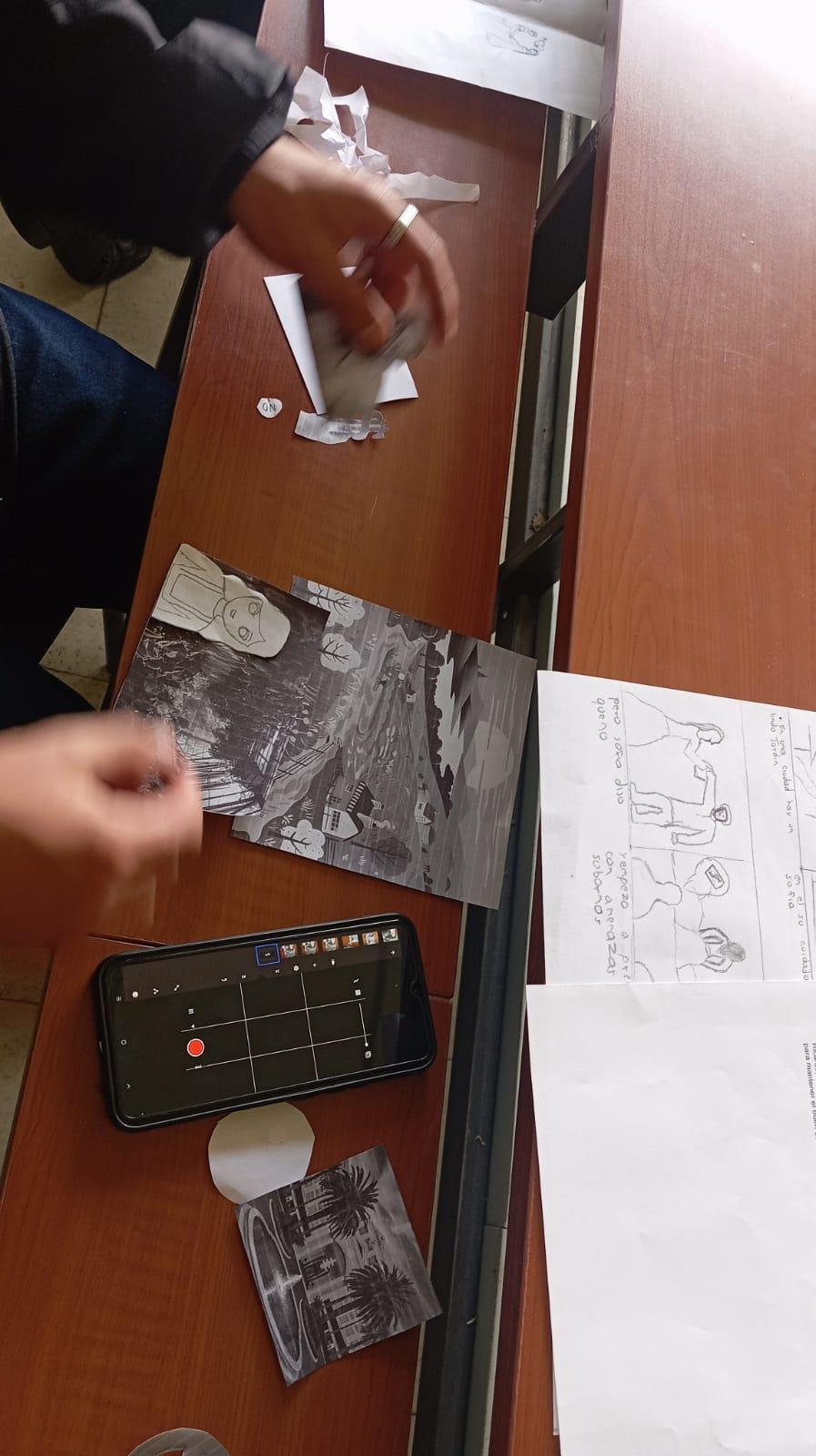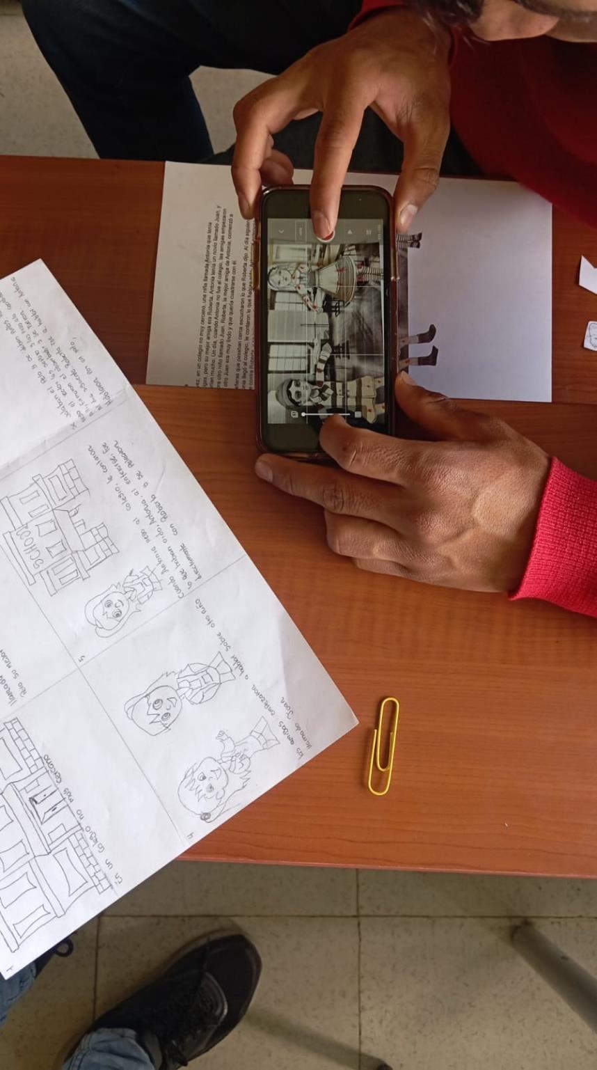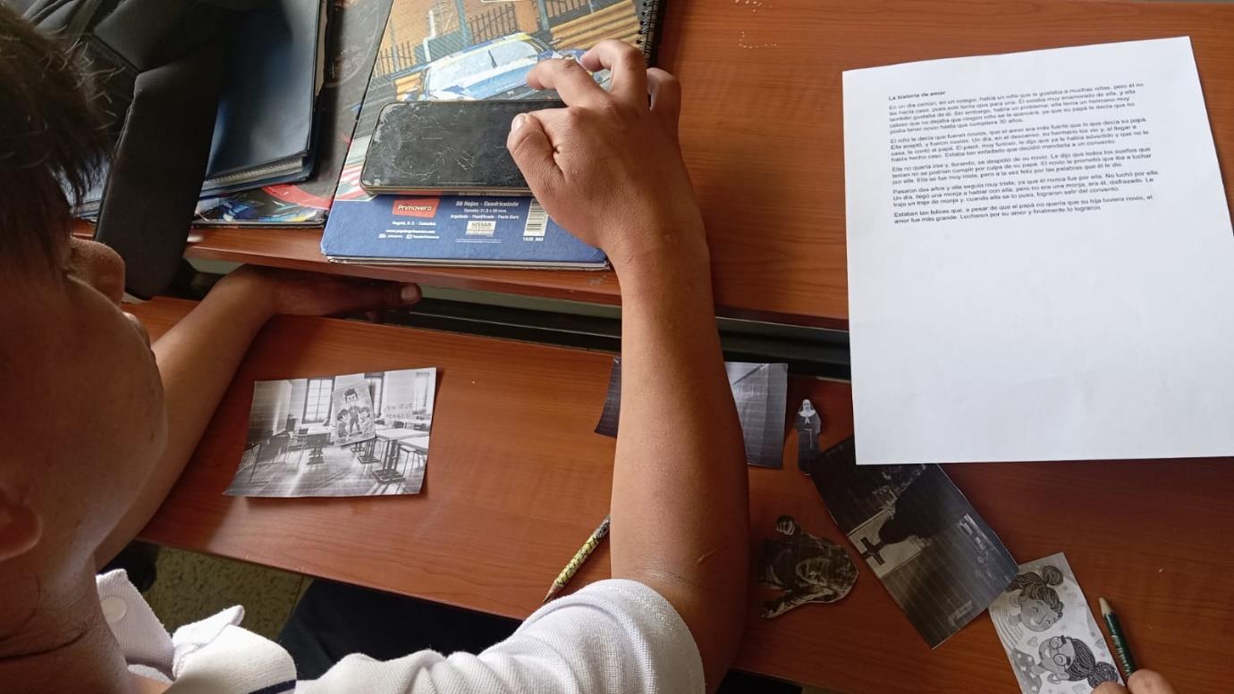 A cada estudiante se le entregó un kit con imágenes que representaban elementos clave de su cuento. La tarea consistía en establecer un enlace entre su storyboard y el material entregado. Les dimos tiempo para que revisaran una a una las imágenes del kit y analizaran cómo podían integrarlas en su storyboard.