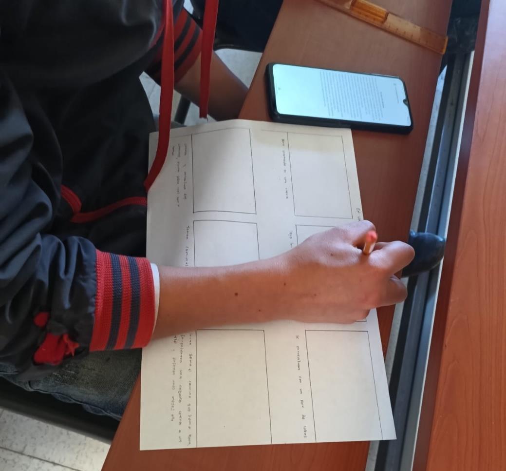 En la cuarta intervención realizada el día 17/09/2024 nuevamente se nos asignó el curso 10º B. Comenzamos revisando los storyboards realizados en la sesión anterior. Mi compañero, Juan José, y yo hicimos una revisión individual de los cuentos para preparar un kit gráfico que los estudiantes pudieran utilizar en esta clase.