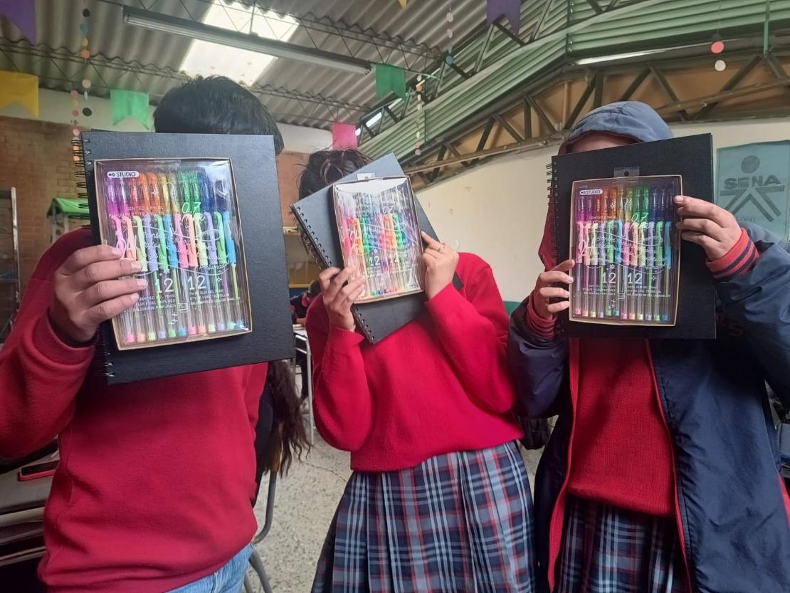 Por otro lado, una vez se socializa con el 10b, nos trasladamos al grado 10A para realizar la misma sesión, dando evidencia de los procesos artísticos y culturales promovidos y también obsequiando los detalles a todos los participantes y quienes destacaron con la escritura de sus historias.