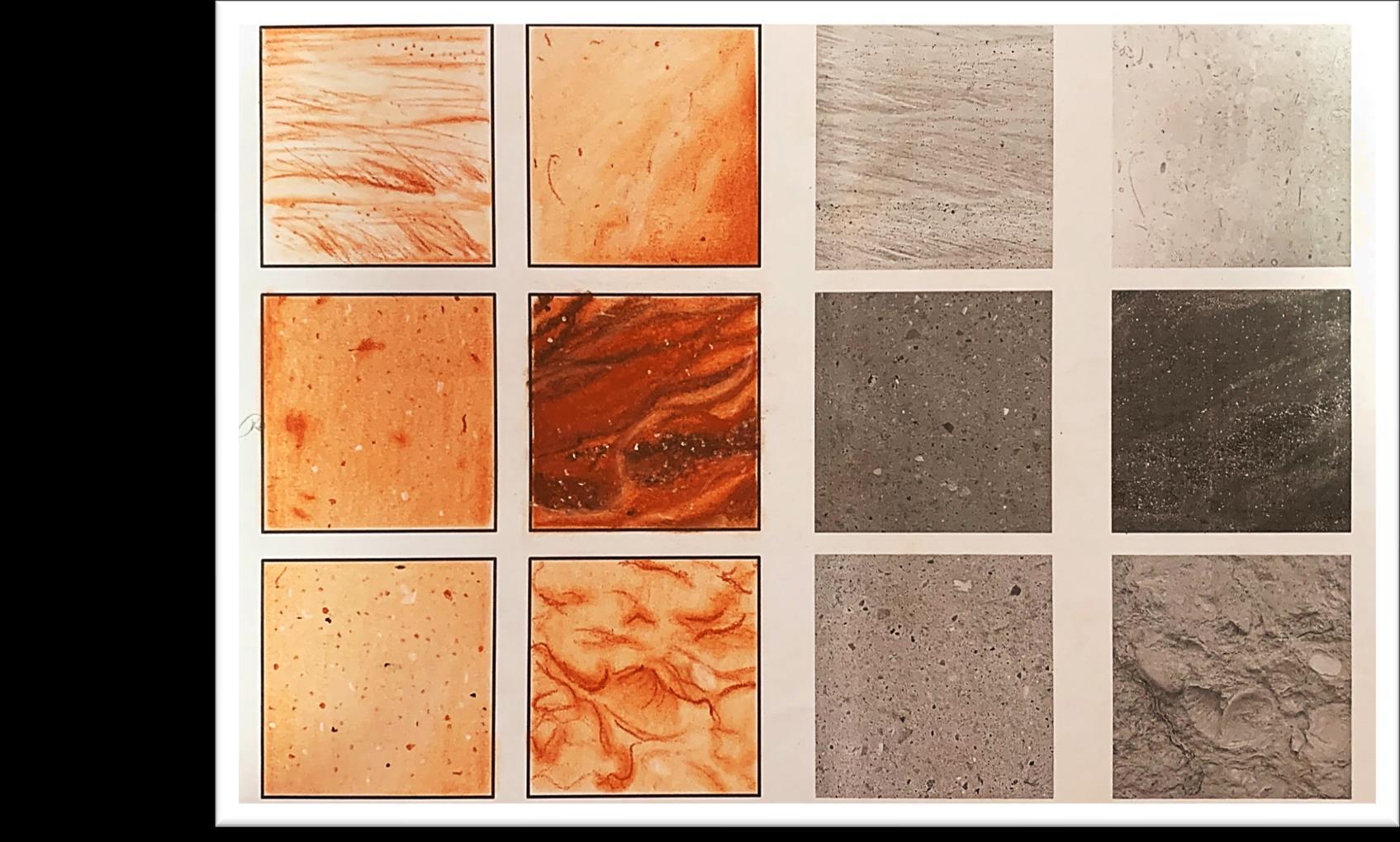 Durante los procesos de desarrollo de cada técnica pude confirmar que independientemente del material o herramienta que utilicemos hay dos cosas que son fundamentales para la representación de materiales y texturas (no solo arquitectónicas), los trazos y el degradado; puede ser que tengamos el material más ameno o el más caro, pero si nuestro trazo es brusco o lo hacemos solo por hacer, se nota, el dibujo habla por si solo; un punto más o una línea más cerca de otra difiere saturaciones, profundidad, luz.