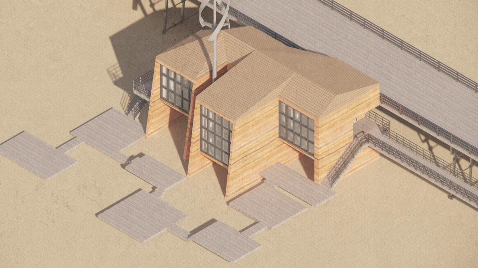 This project was to design a leaning room located on Southport Pier. My learning room was designed specifically for studying Southport’s natural geography. Made from rammed earth and timber, this building was created with sustainability as a driving factor behing the design. A helix wind turbine collects the wind’s energy.