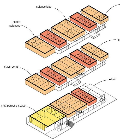 Katie described her use of programmatic diagrams to iterate different adjacency arrangements to create an interior that can be understood by the elementary students while promoting safety and visibility.
