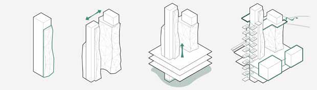 The upper levels alternate in program, with the odd levels acting as “rejuvenation” floors and the even levels as “activation” floors. The rejuvenation levels