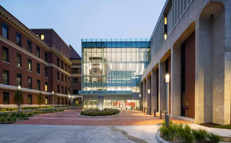 In addition to these programmatic goals, DeRoin explains the team’s desire was to celebrate the history of the structure without compromising the provision of modern solutions. The modern, comprehensive vision for the McGoogan Library was realized throughout the design and construction process; the team also faced a series of challenges which forced several reexaminations of the project. Given the historic nature of the building, existing structural elements required updating and renovation to meet current capacity needs. Many of these changes arose as a result of updating the 1970s architecture to accommodate the more stringent building requirements of today. DeRoin further explained that building code and energy code brought about the need for design changes and a full thermal envelope improvement. Additionally, ADA compliance needed to be reevaluated and addressed to create a universallyaccessible space.
