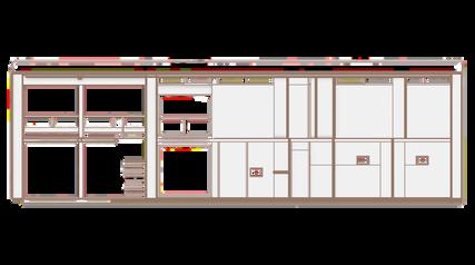 Los muros de 45 cm de espesor, se sitúan longitudinalmente a distancias de 12,5 metros y transversalmente a 5,1.