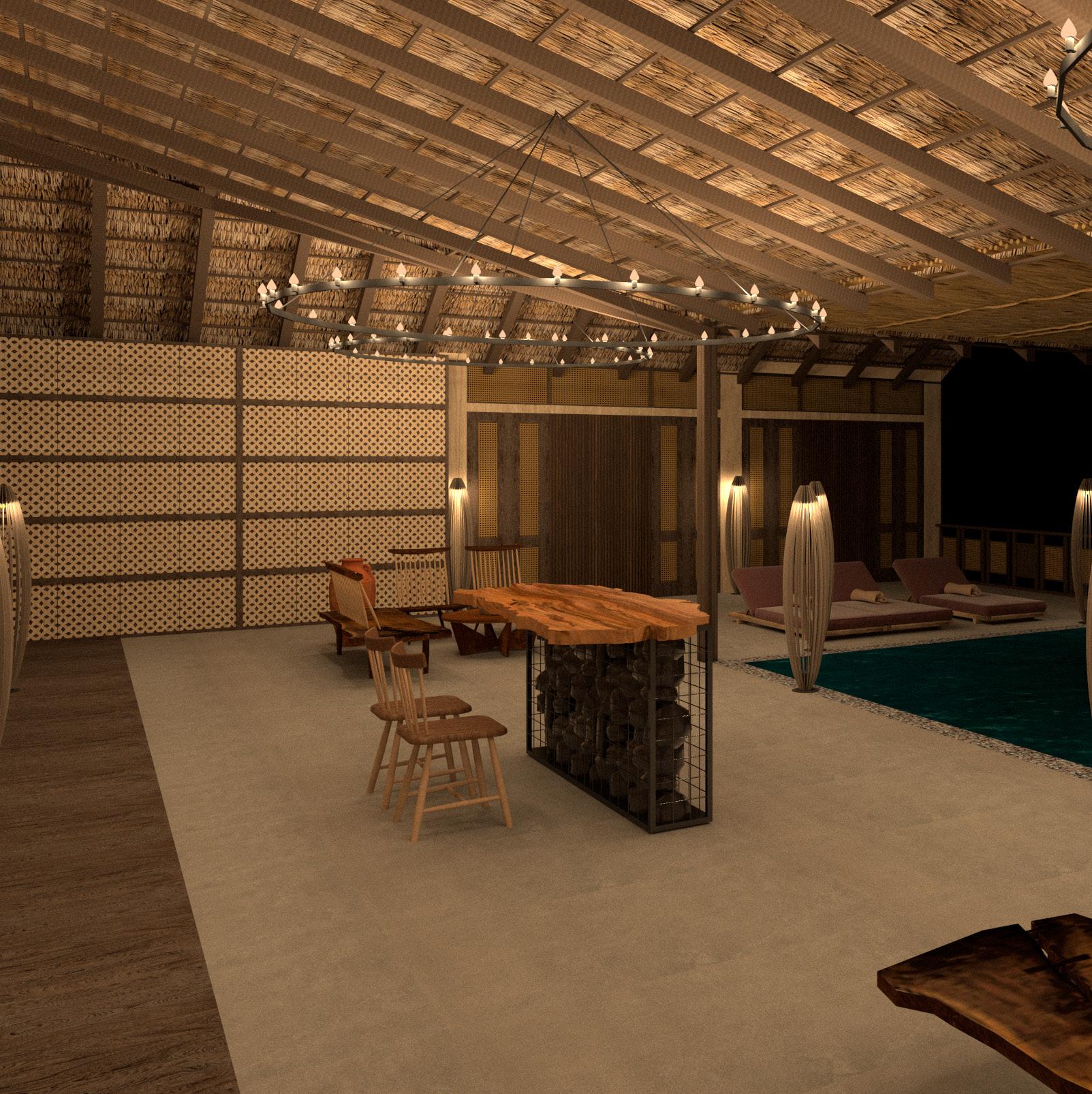 The spatial planning of the restaurant and bar depicted flow and hence the elements were also not having any angles in their design.