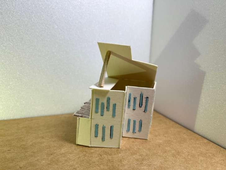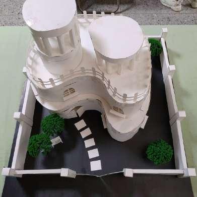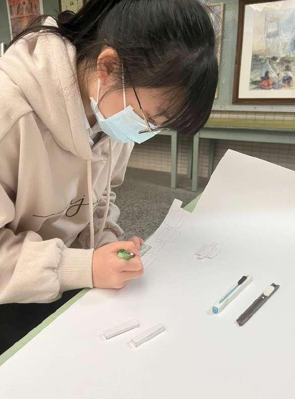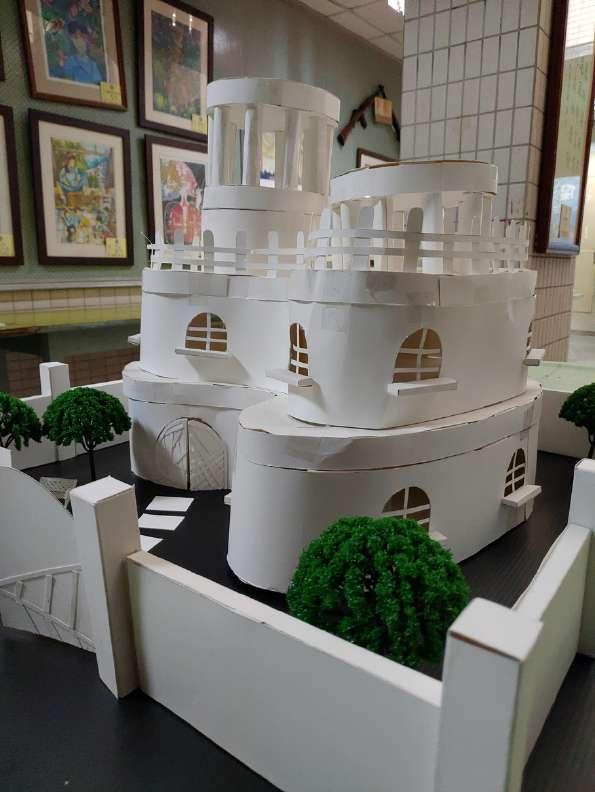⾃主學 <紙建> 課學 我的製作部 提出主製作⽅向思考辦法⼤⾨⾨口設計繪製裁線 段黏貼小物件 作理 利⽤西卡紙製作因為現⼤部的建都是⽅形的居在討論 定⽤曲線建構建本且不規則不對稱的外為建 外 18