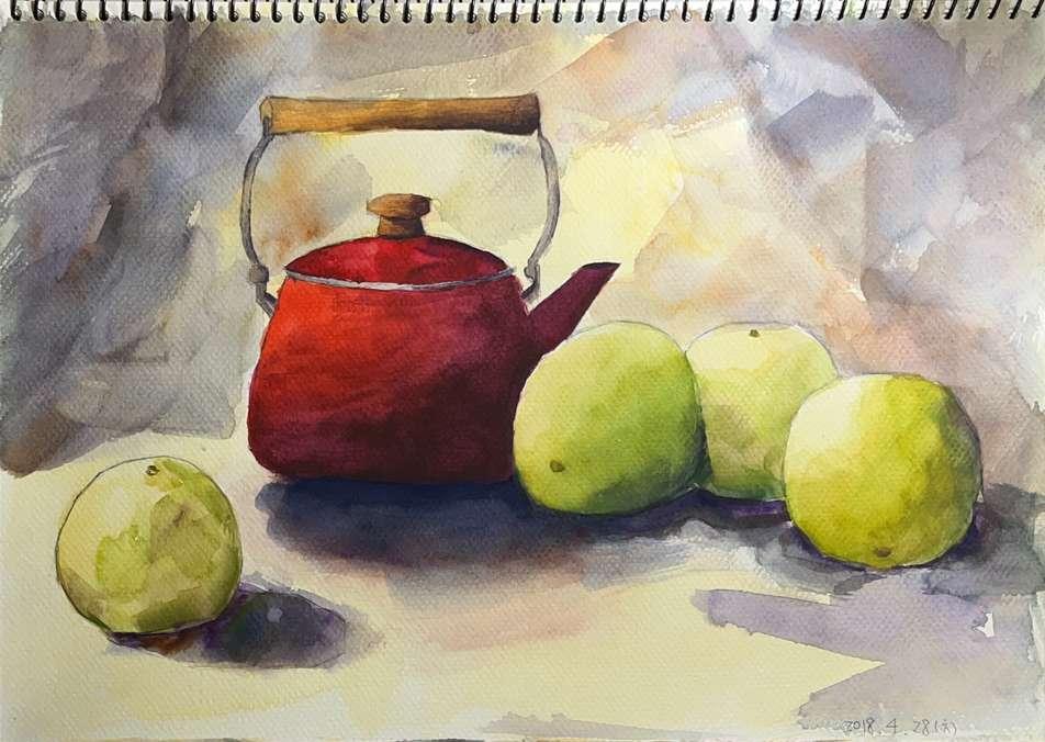 ⽔彩 8K ⽔彩 <紅壺> 8K ⽔彩 <鞋盒和書> 8K ⽔彩 <陶檸> 34