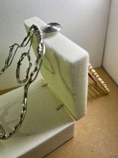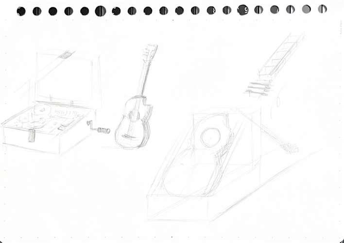 MEET THE NIGHT WHALE 15 <「」的⾳想世> 材 PU⾶木線銅線 設計理 吉⾳盒作為發想 ⾳盒⽤PU現出打開盒⼦的樣⼦中間銜的⽅ 卡榫線表現吉是⽤線表現橋頸⽤ ⾶木現表現出吉的構 撩撥弦 弦弦之間的 撥動的而漸 ⾳盒的⾳ 漸漸弱 是的幻想即 破嗎