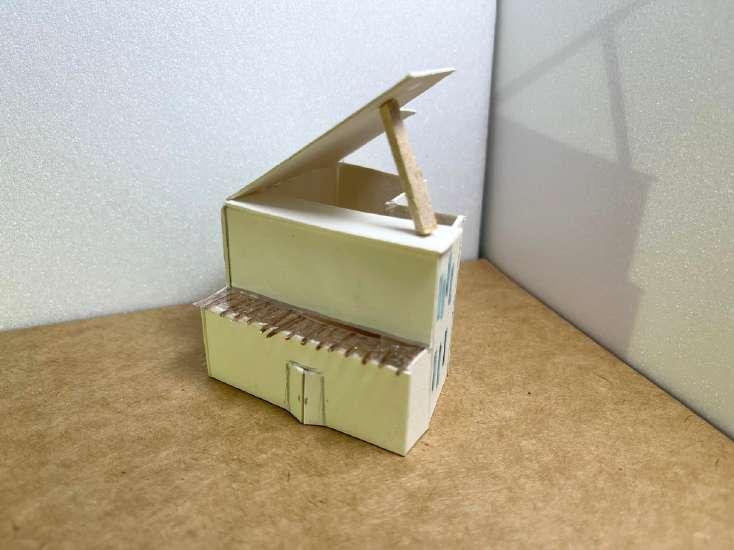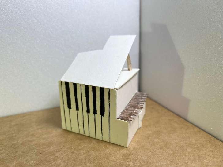 ⽴作品 14 <⿊⽩建> 材 紙⾶木便利貼銅線明包裝紙代針 設計理 鋼作為發想 在⼀的天明包裝紙設計增加光性銅線 則是鋼的弦戶先⾊的便利貼代表參 錯的為建物增添⼀種不平衡⿊⽩鍵的 牆則是可拍照打卡⽤ 你 輕敲鍵 ⾳從中淌而出 ⿊⽩交錯的彈奏 彈奏出 ⼈⽣的章