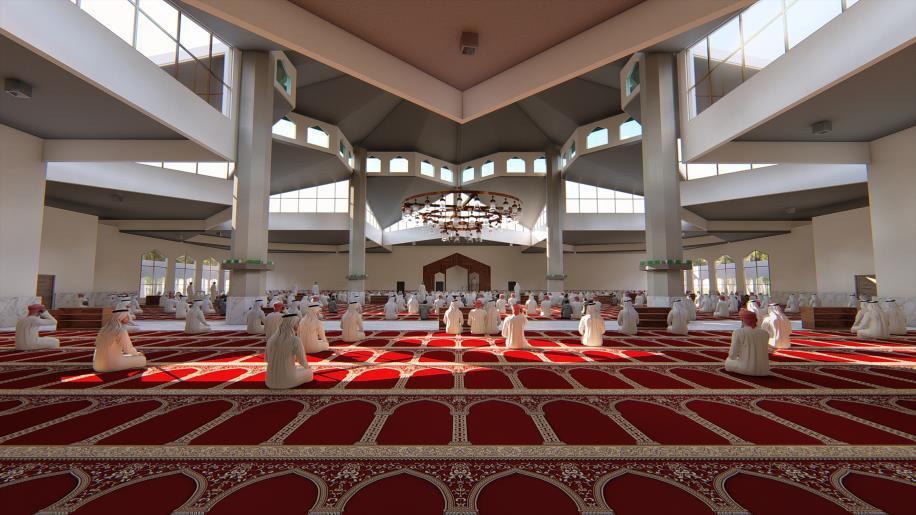 The concept is inspired by the Islamic decoration that is frequently used in mosques, and to achieve sustainability make a courtyard to the mosque for prayer in convenience weather, and addition courtyard in social section to move the air inside.