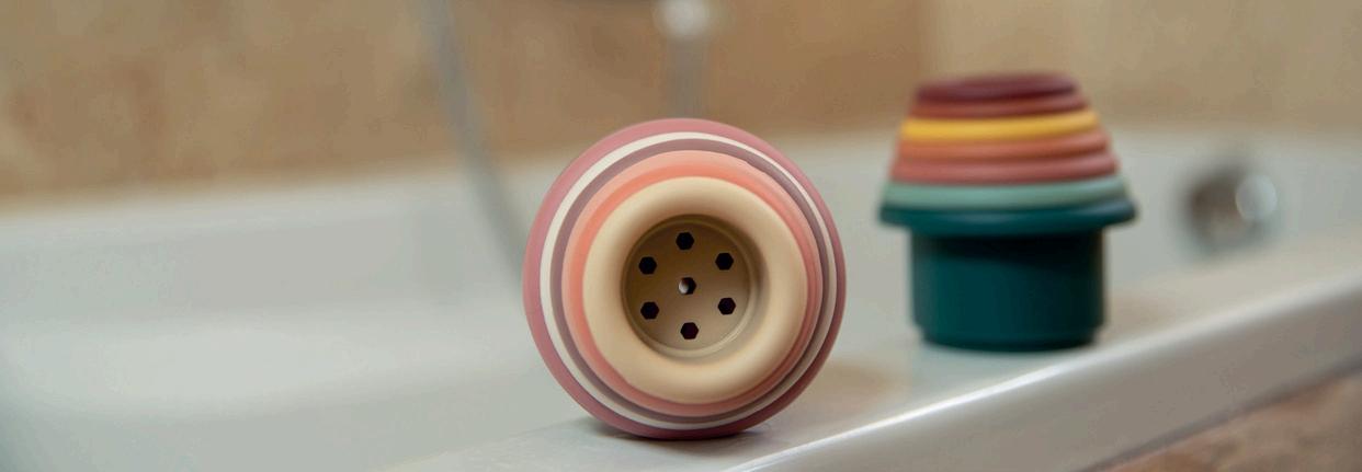 Stackable pots in different sizes and colours Each pot has small holes so that your child can let it rain in the bath Made of silicone