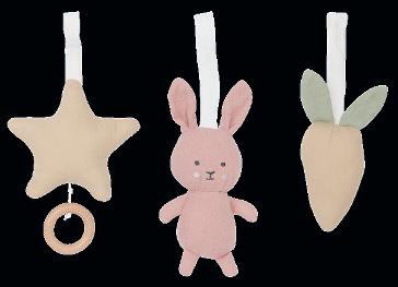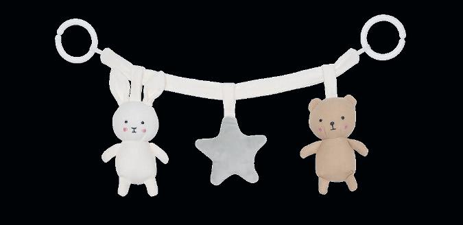 Classic pram hangers made from natural materials, adorned with the beloved Bunny and Teddy characters.