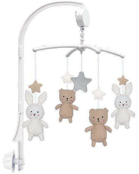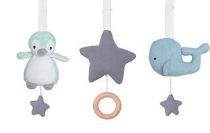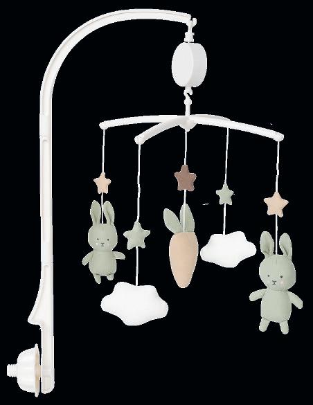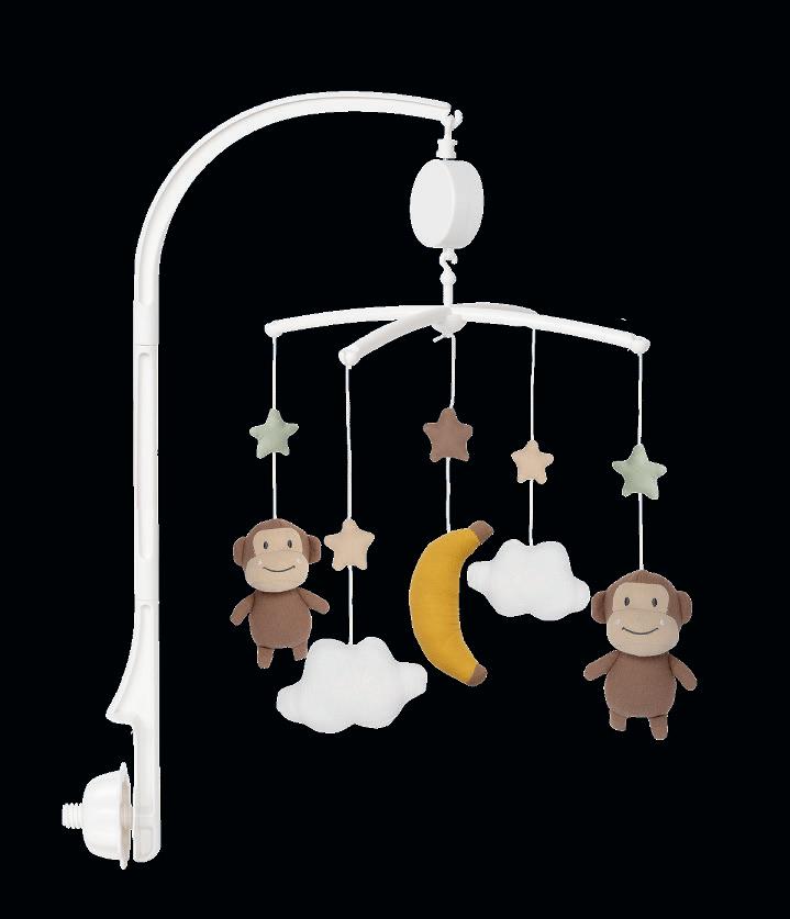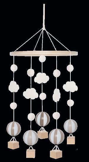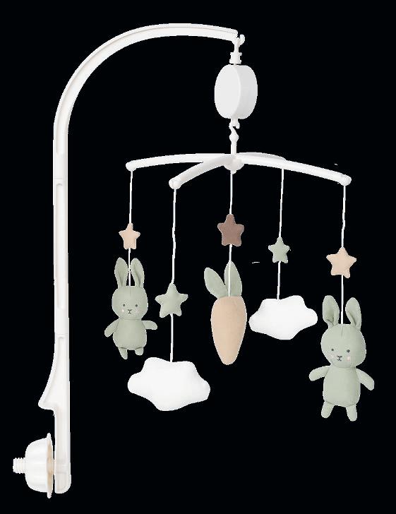 These musical mobiles come complete with a mobile arm that can be attached to most changing tables and cribs. The figures spin slowly while the melody ”Brahms Lullaby” plays. A cosy way for babies to settle down.
