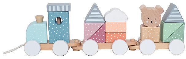All aboard the ice cream express! Stack, build, and pull this charming wooden train, complete with colourful ice cream cones. Perfect for imaginative play and developing motor skills while having fun.