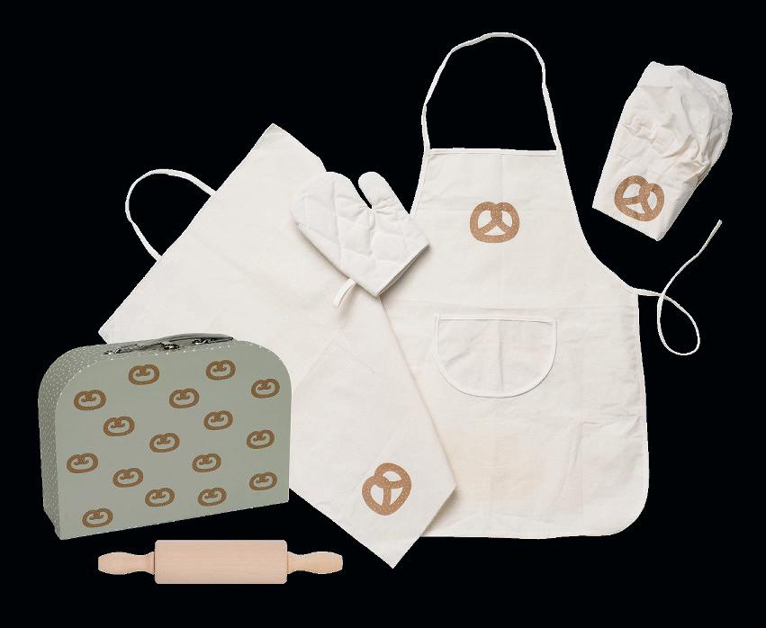 Chef’s hat, apron, towel and oven glove in one size. Bag: 29x20x9 cm 3+