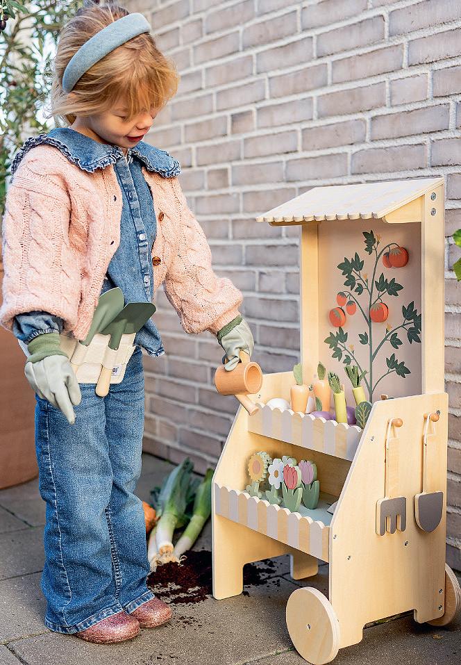 Includes 27 vegetables, flowers and tools for realistic gardening play