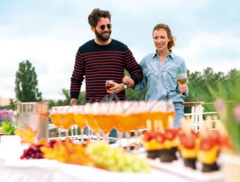 Sich fein machen und Gastronomie vom Feinsten erleben. Mit Wine & Dine können Sie ein exklusives Genuss-Highlight hinzubuchen. In einem separaten Restaurantbereich decken wir den Tisch für Sie und verwöhnen Sie mit einem saisonalen Vier-GängeMenü – persönlich vorgestellt von unserem Chefkoch, mit einer vorzüglichen Weinbegleitung durch unsere Maîtres. Das Wine & Dine-Menü können Sie einfach an Bord hinzubuchen. Und wenn Sie noch mehr Winzerkunst und Kulinarik entdecken möchten –unsere Wein- & Genuss-Reisen auf Rhein, Rhône und Douro sind der reinste Hochgenuss. Auf Seite 42 kommen Sie auf den Geschmack.
