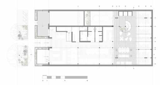 En el primer nivel revitalizamos el antejardín, propusimos un nuevo vestíbulo manteniendo la escalera existente y localizamos las zonas compartidas de trabajo, salones privados y baños compartidos. En el segundo nivel, diseñamos cuatro apartamentos con diferentes tamaños e iluminación natural a las fachadas principales o a patios interiores.