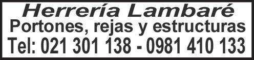 HERRERÍA Aberturas Barandas de balcón 01 De hierro sencilla 1,00m, pasamanos de 60x25mm en chapa doblada Nº14 colocación incluida dentro del radio urbano de Asunción m2 235.950 02 Idem de hierro dibujada, m2 272.250 Balancines sin colocación - A partir de 1 m2 01 Balancín fabricado con ángulo 5/8 y T 3/4x1/8, hoja de 0,20 m, m2 165.000 02 Balancín fabricado con ángulo 3/4 y T 7/8 x 1/8, m2 231.000 03 Balancín de 60x60 cm, un 110.000 04 Balancín de 60x40 cm un 82.500 Cortinas metálicas de enrollar - A partir de 10 m2 01 Fabricación y montaje de cortinas automatizadas con láminas de acero galvanizado m2 750.000 02 Fabricación y montaje de cortinas manuales con láminas de acero galvanizado m2 650.000 03 Cubrerrollo de chapa N° 18 con puerta trampa ml 400.000 Escaleras 01 Caracol diámetro 1,20 m, estructura de hierro con baranda, peldaños, con 1 mano antióxido y colocación incluida, por metro de altura, ml 858.000 02 Escalera marinera ml 223.850 Parrilla 01 Parrilla graduable de hierro enlozada con cenicero y carbonera de 1,20x0,50 m con tapa calor, un 1.595.000 02 Campana de 1,20x0,60 m para parrilla con colocación, un 418.000 03 Tubo de campana en chapa negra Nº 18, ml 78.650 Reja para ventana 01 Reja artística sencilla, con marco de ángulo de 3/4 x 1/8”, varilla de 10mm y dibujo rombo con planchuela de 3/4 x 3/16, m2 198.000 02 Idem anterior reja artística dibujada, m2 253.000 Portones (ver Portón a control remoto) Medida Rejilla de Patio Tapa de Registro 15x15 cm 29.400 39.500 20x20 cm 33.600 44.800 25x25 cm 41.000 49.500 30x30 cm 50.900 56.000 35x35 cm 62.600 58.700 40x40 cm 69.000 72.800 50x50 cm 95.400 93.800