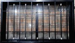 de 2 hojas (1 fija + 1 corrediza), en vidrio templado 8mm con perfiles de aluminio anodizado