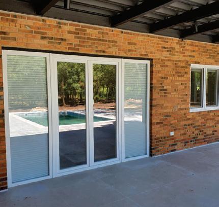 Ventanas: de 2 hojas (1 fija + 1 corrediza), en vidrio templado 8mm con perfiles de aluminio anodizado.