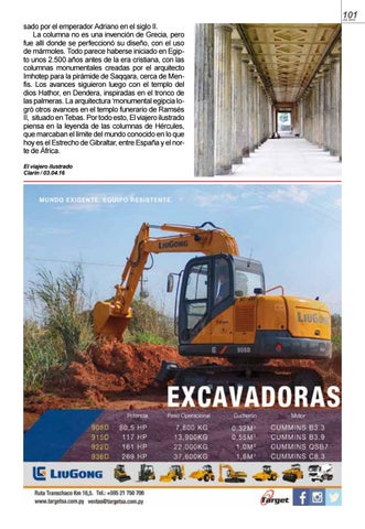 sado por el emperador Adriano en el siglo II. La columna no es una invención de Grecia, pero fue allí donde se perfeccionó su diseño, con el uso de mármoles. Todo parece haberse iniciado en Egipto unos 2.500 años antes de la era cristiana, con las columnas monumentales creadas por el arquitecto Imhotep para la pirámide de Saqqara, cerca de Menfis. Los avances siguieron luego con el templo del dios Hathor, en Dendera, inspiradas en el tronco de las palmeras. La arquitectura ‘monumental egipcia logró otros avances en el templo funerario de Ramsés II, situado en Tebas. Por todo esto, El viajero ilustrado piensa en la leyenda de las columnas de Hércules, que marcaban el límite del mundo conocido en lo que hoy es el Estrecho de Gibraltar, entre España y el norte de África. El viajero ilustrado Clarín / 03.04.16