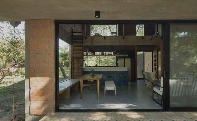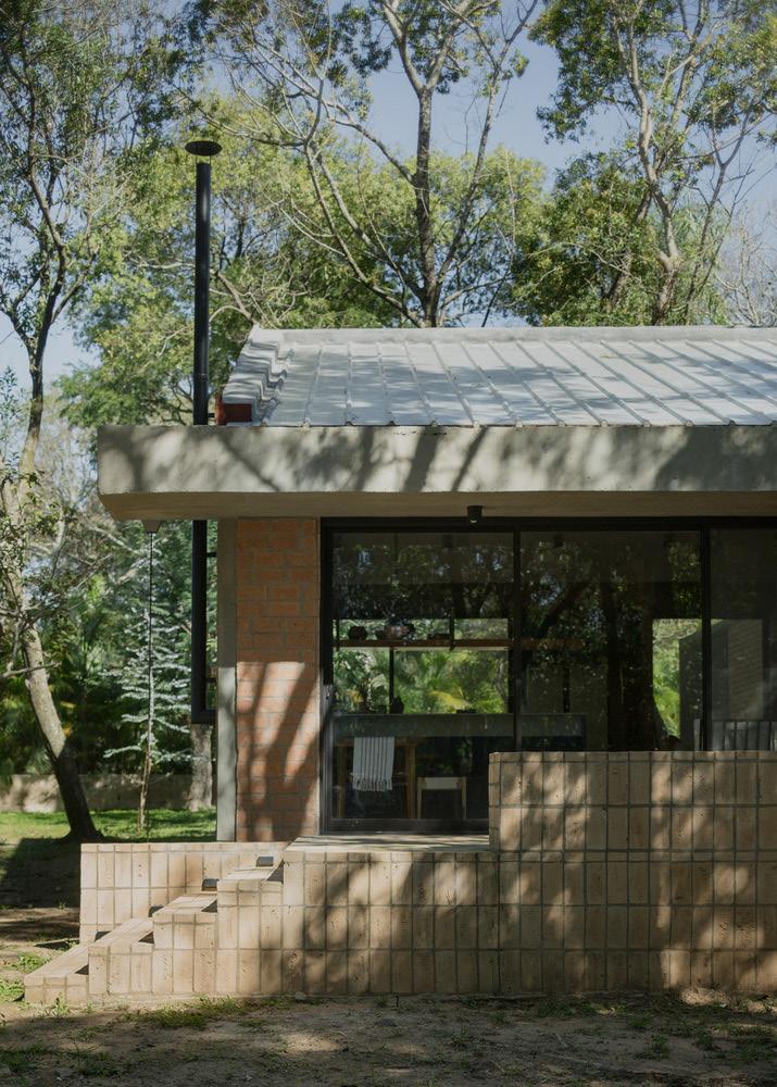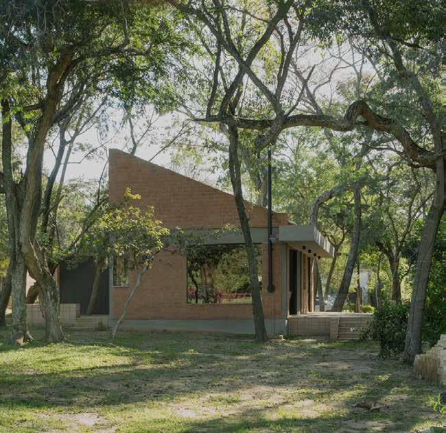 El terreno, parte de un remanente del bosque vecino al Área Metropolitana de Asunción. El volumen de la casa se sitúa estratégicamente al fondo del terreno, en un claro entre los árboles, asegurando así la privacidad desde la calle y manteniendo una conexión visual y física con el entorno natural.