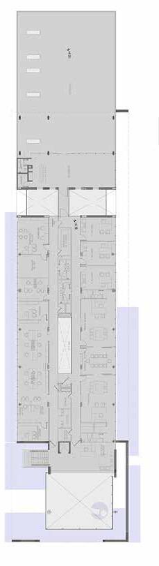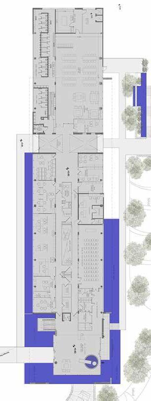 El proyecto se estructura en dos volúmenes principales: un bloque de oficinas de aproximadamente 3.553 m², destinado a áreas administrativas y corporativas, y un bloque industrial de 7.232 m², concebido para albergar la planta productiva y las operaciones logísticas. Esta diferencia ción programática permite organizar con eficiencia los flujos internos, garantizan do que las actividades industriales no interfieran con el funcionamiento de las oficinas y viceversa.