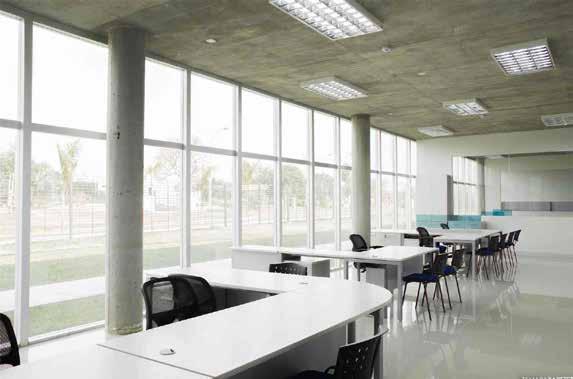 El volumen de oficinas se plantea como la fachada institucional del complejo. Su arquitectura adopta un lenguaje con temporáneo, sobrio y funcional: planos limpios, proporciones ordenadas y una composición que prioriza la claridad volumétrica. Aunque la documentación pública no detalla explícitamente los materiales utilizados, el edificio evidencia una combinación de cerramientos sólidos y vanos cuidadosamente modulados, lo que sugiere una intención de equilibrio entre expresividad arquitectónica y efi ciencia constructiva. En línea con otras obras del estudio, la imagen resultante es profesional, contenida y coherente con el carácter corporativo de la empresa.