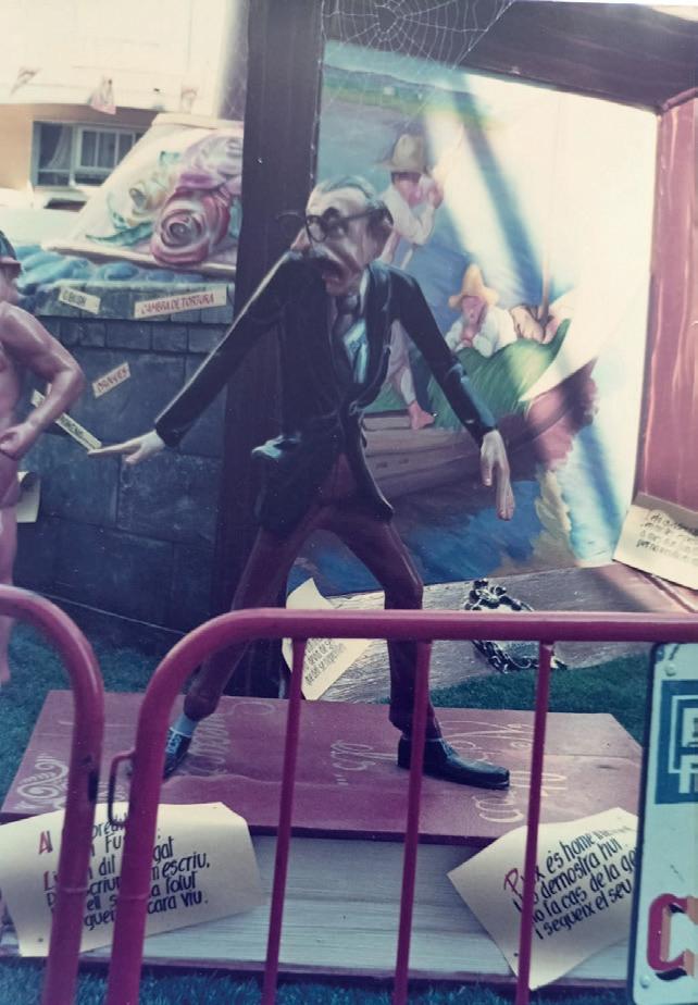Però no va ser fàcil a Gandia, durant anys, hi hagueren comissions fonamentalistes amb el fet que el llibret sols havia de ser tan sols l’explicació de la falla feta en vers i estaven totalment en contra del que f é iem en la comissió de Corea. El meu nom i la meua imatge feta ninot de falla es plantà, durant diversos exercicis, en una de les bases del monument faller que mirava cap a la casa en la qual jo vivia en el carrer Alfaro on es plantava la Falla de Màrtirs, una de les comissions, junt amb la de la Vilanova que, aleshores, foren més bel·ligerants amb la idea que preconitzaven des de la nostra Falla.