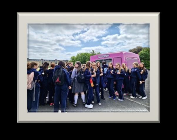 To be honest I thought it would have been steeper but it was a good walk, a little rocky but nothing too bad. We all took loads of photos of the great views around us and selfies with our friends, and the media team made loads of posts and tiktoks. The sun was still beaming, leaving some of us all a little sunburned at the end, but it was worth it All of us enjoyed some great laughs on the walk but near the end we were so tired of walking! Ms. Lafferty had mercy on us and allowed us to head ‘home’ at 2:40 Some of the girls went to Póg, got food, sat on the grass and recouped. This was a perfect end to the day!