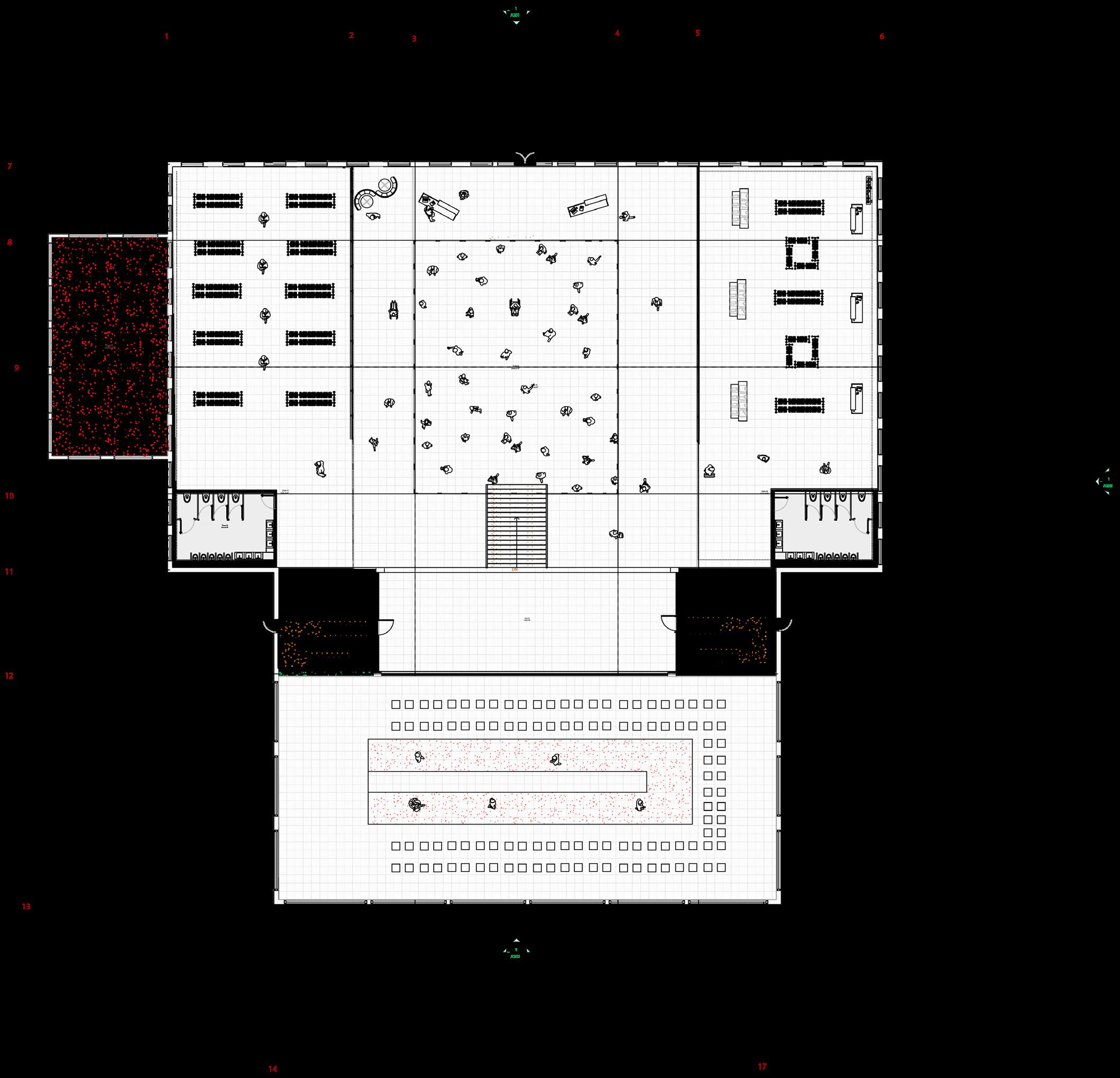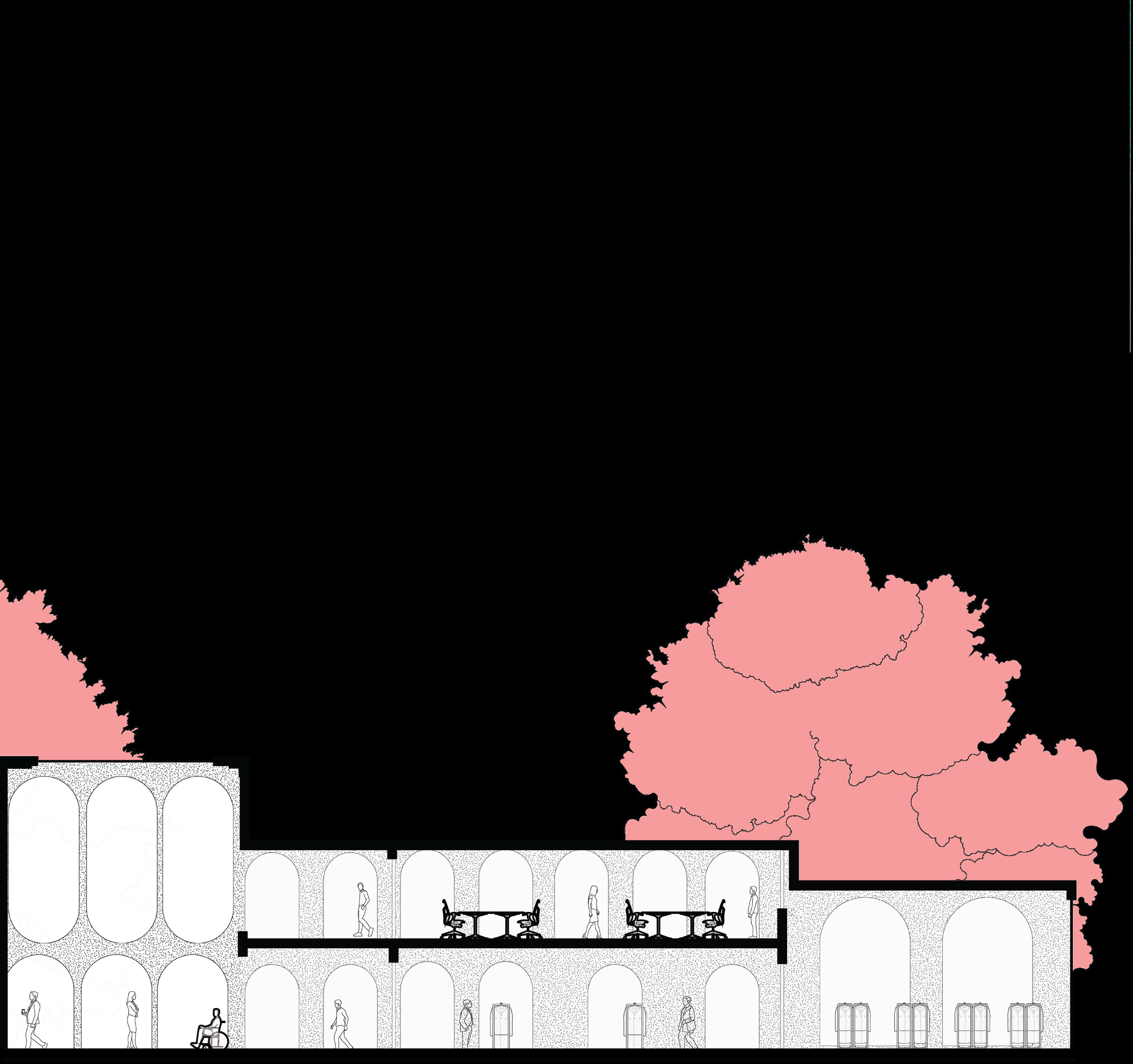 A key theme of this design is spatial flexibility. For example, a fashion show isn’t confined to its formally programmed area, it can take place anywhere on site. The entire space becomes a set designer’s playground.