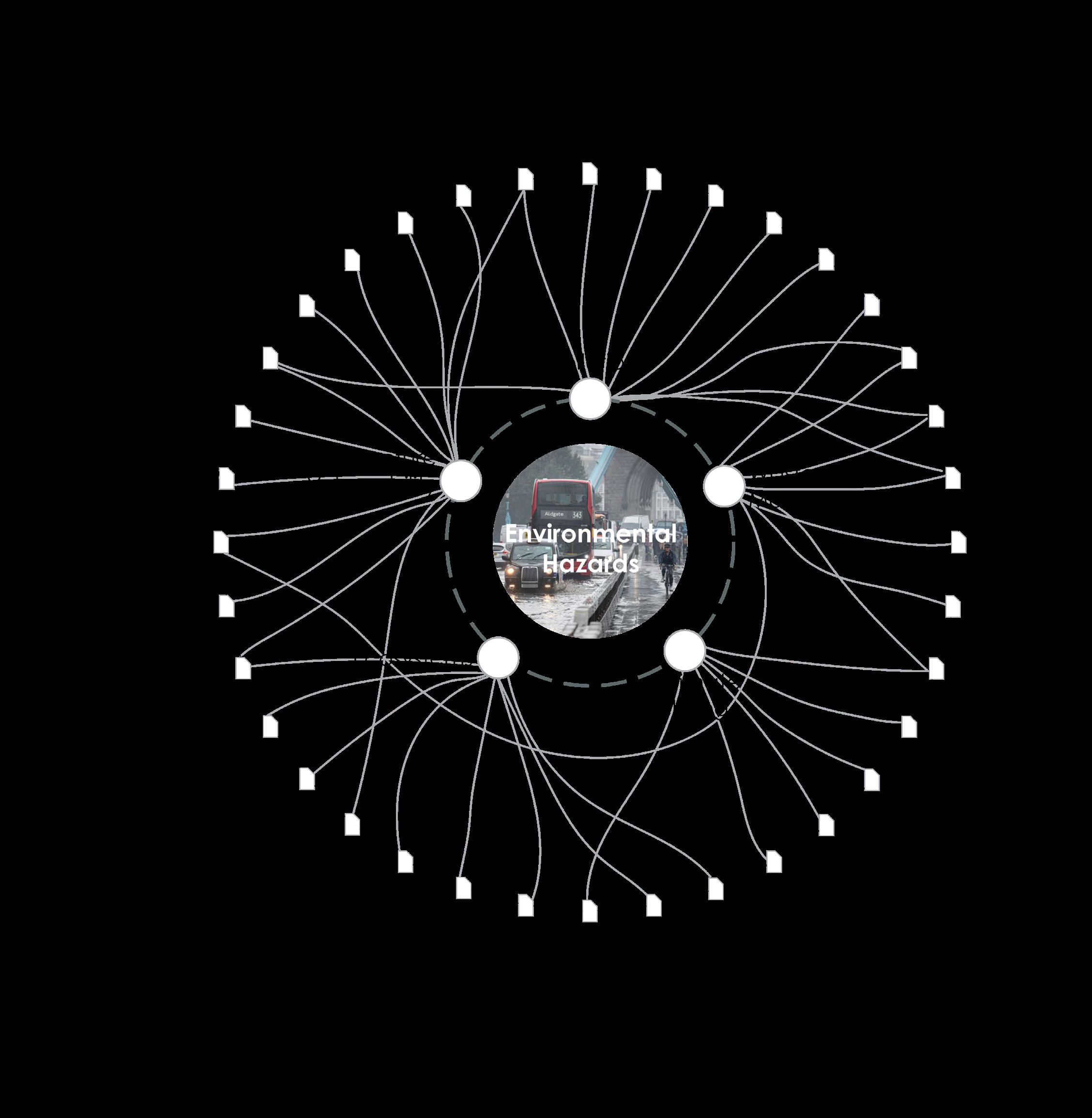 Over the course of the semester, our design studio conducted research on London, UK, focusing on the threats posed by climate change. From this research, we created a graph illustrating the impact of various environmental hazards on the cityscape. Building on these findings, we developed a set of goals, objectives, strategies, and actions to address these challenges, each tailored through the lens of individual student projects.