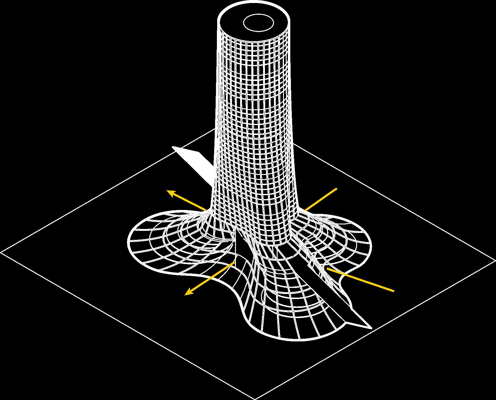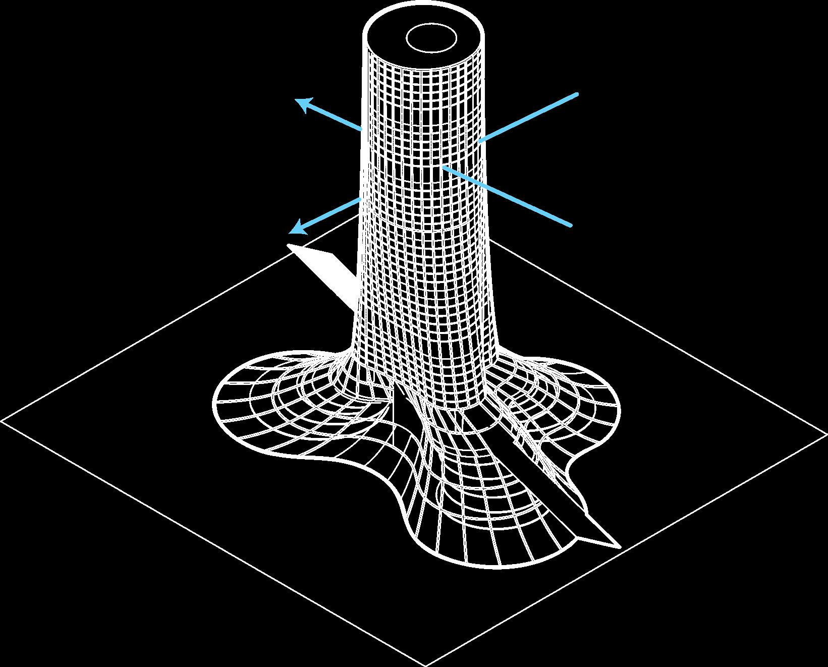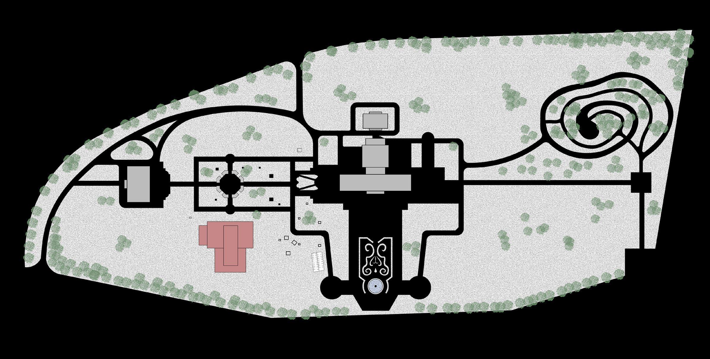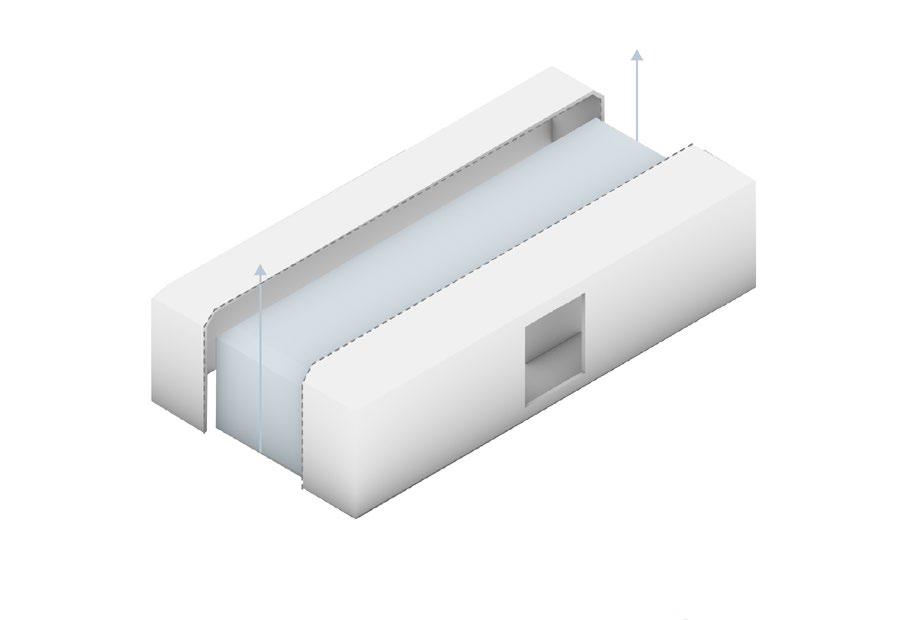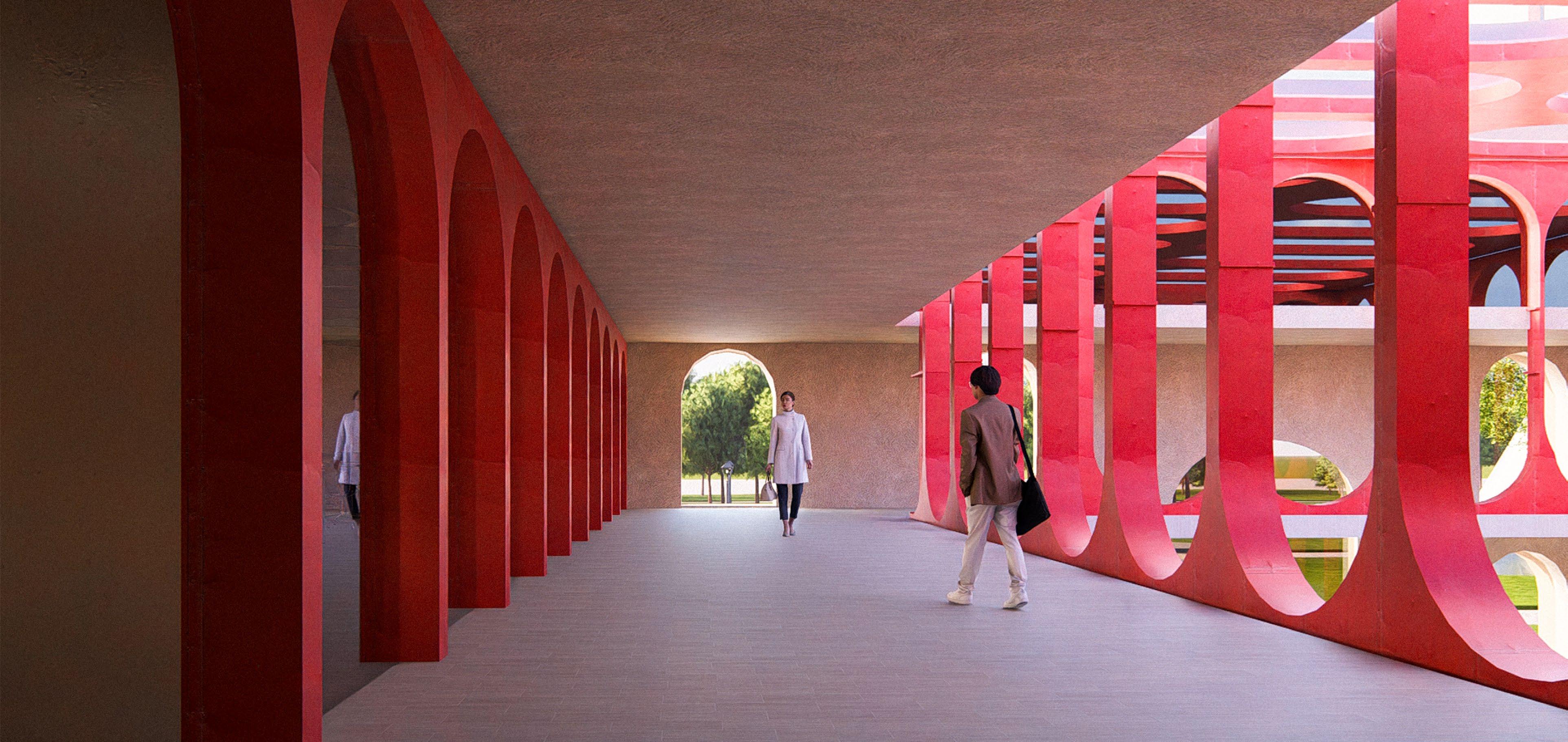 These abstracted arches, inspired by neoclassical architecture, repeats and elongates itself, guiding the user through spaces, and also seperating them.