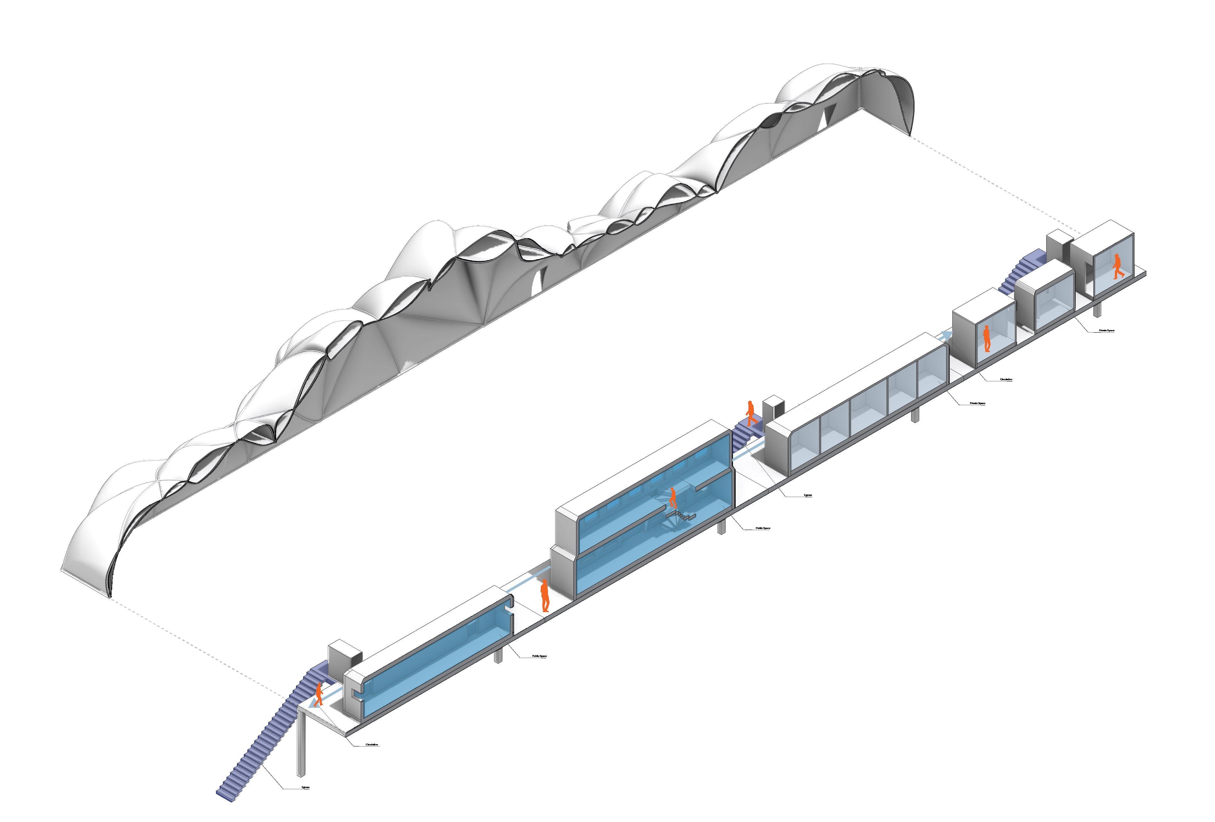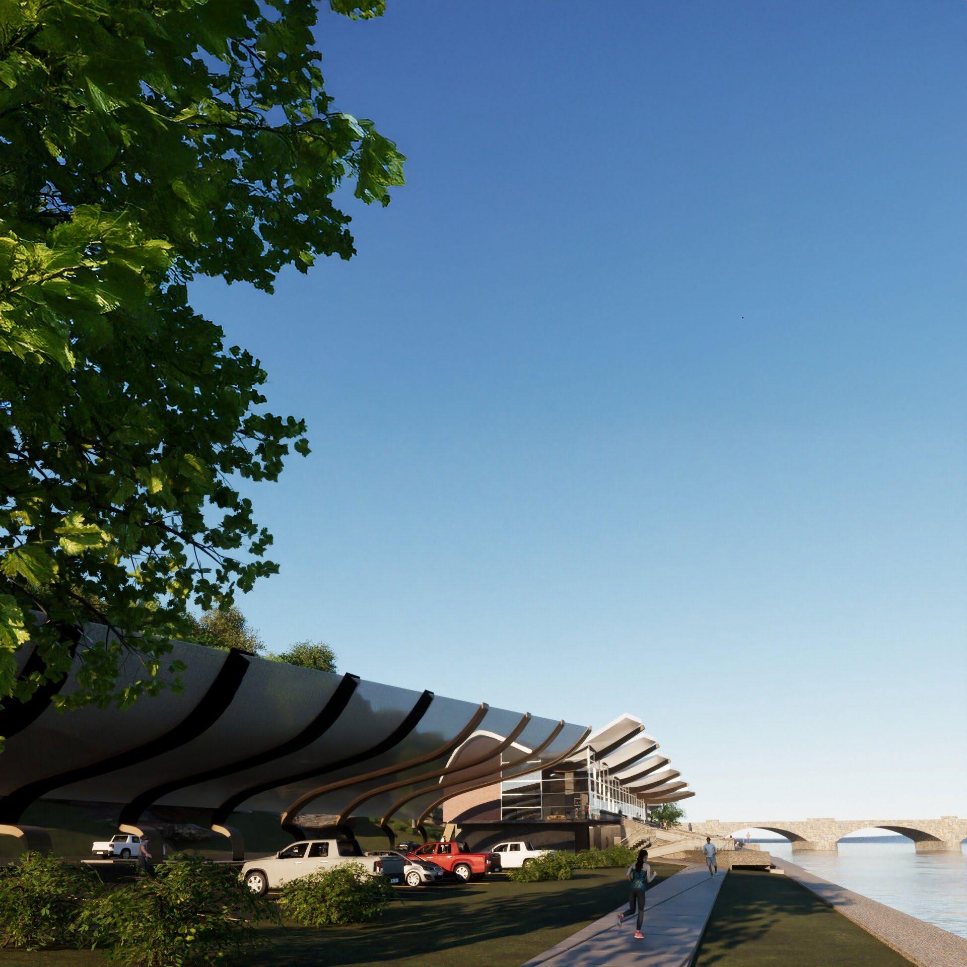 Inspired by the structure and nature of a bird’s wing, we redesigned and repurposed the boat house row grandstands, not only to be a place to watch sports, but an area for community engagement of all forms through sustainable practices.