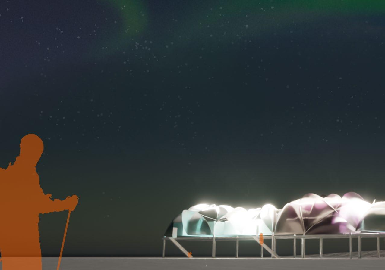 Located on the Greenland Ice Sheet, Summit Camp is a research station for earth’s climate, with information dating as far back as 500 years. With the site being so isolated and within housed within an extreme climate, we have chosen to redesign the summit camp with a focus on modularity, viewfinding, and immisability. This enables outdoor activities within a controlled microclimate, fostering interaction and promoting overall health within the camp.