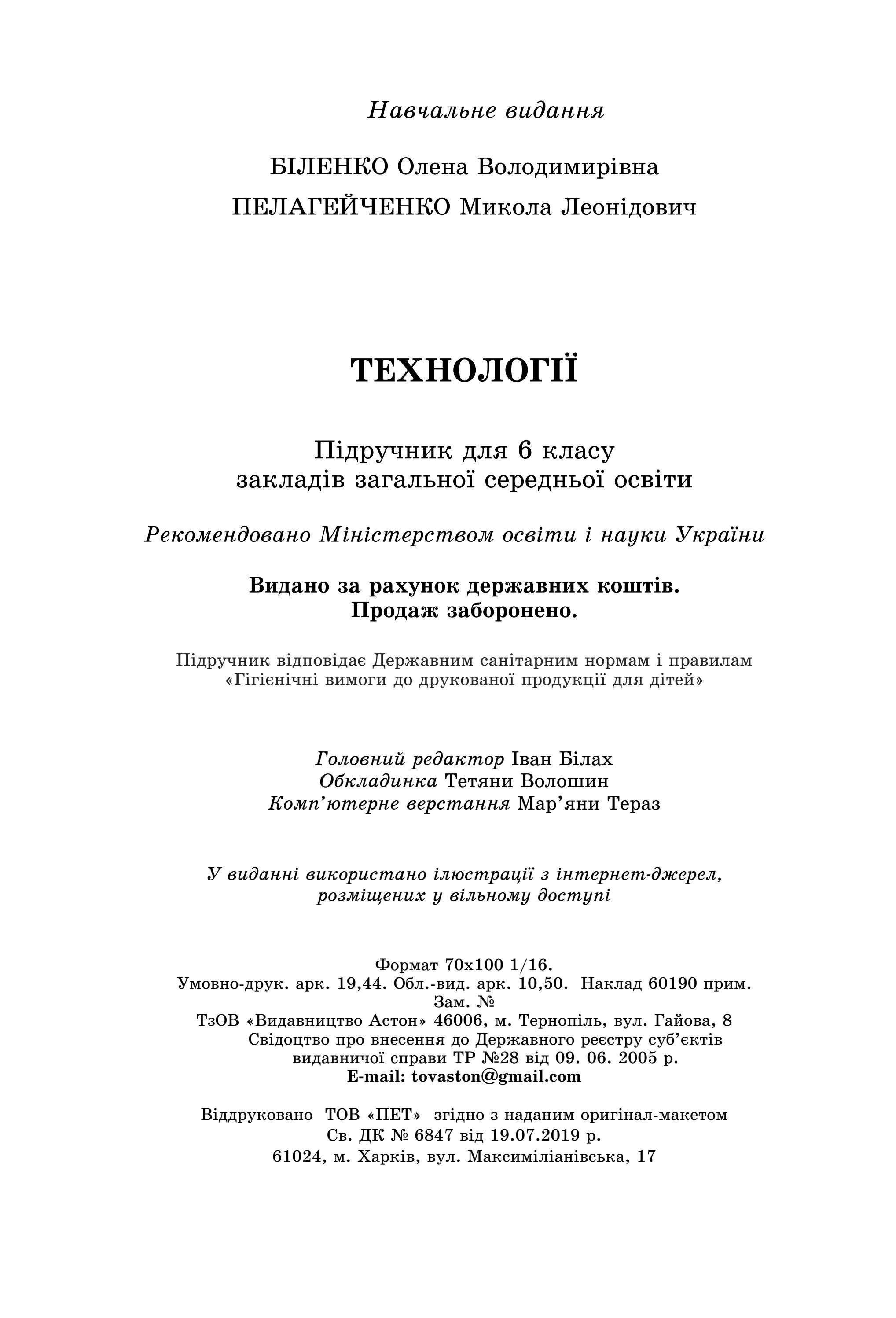 Технології 6 клас